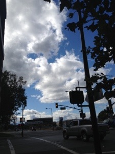 Fluffy clouds on a beautiful, rainy day.
